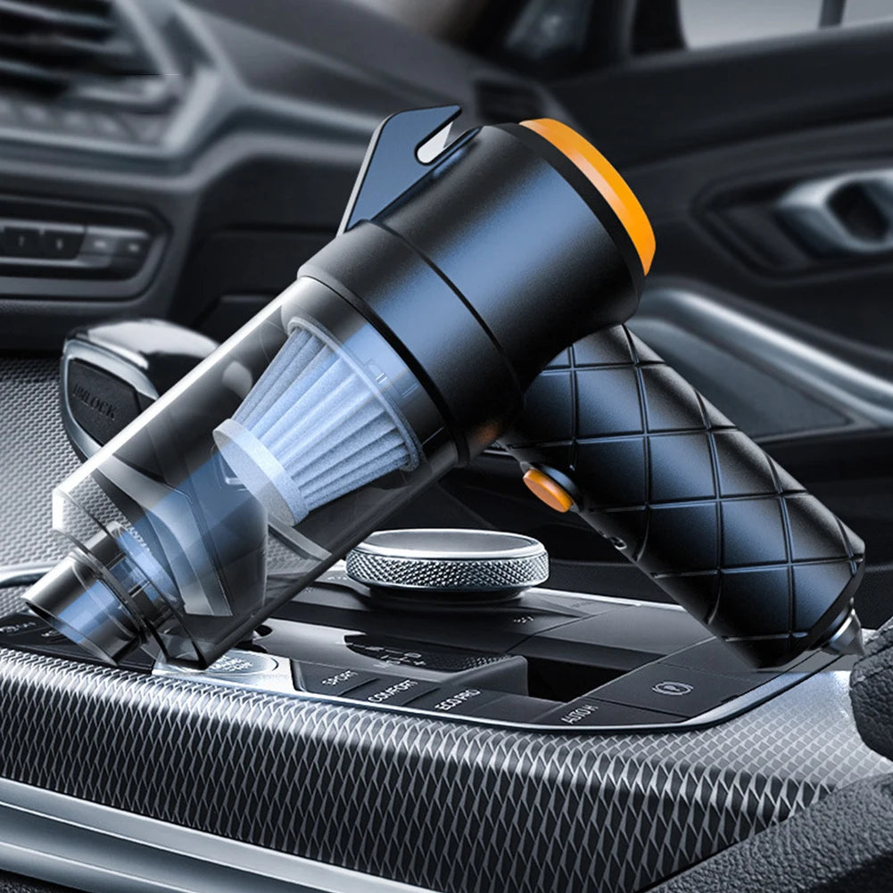 Pro car vacuum has a built-in2 * 2000mAh lithium battery. It can work continuously for 30 minutes in first gear. And with a fast charging port.